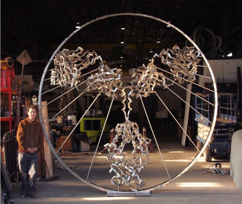 Fig. 20. The sculptor and his creation. Julian Voss-Andreae and his rendering of the immunoglobin molecule in stainless steel, with the title “Angel of the West”.